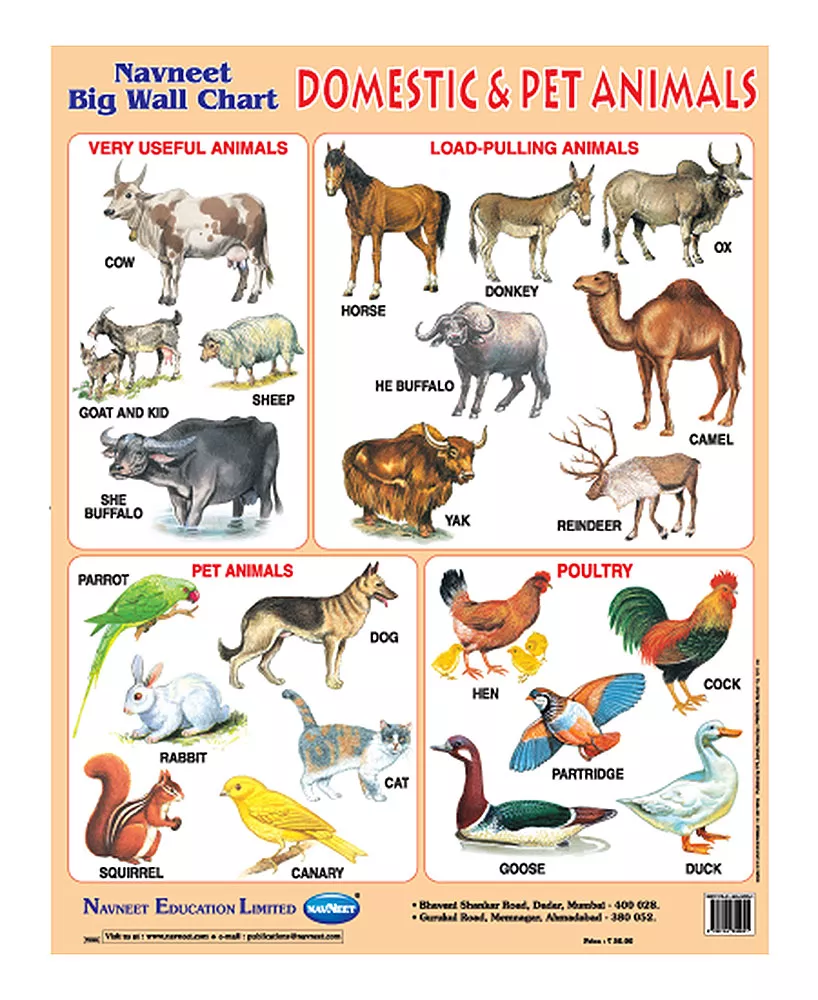 Navneet Domestic And Pet Animals Big Wall Chart For Kids | 2+Years
