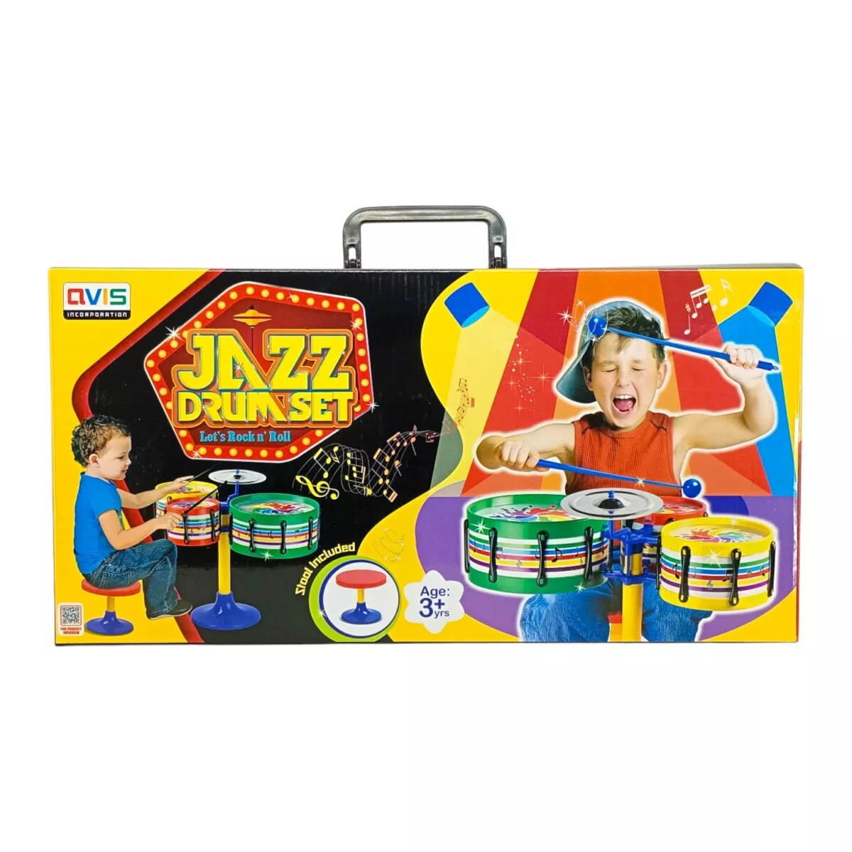 Avis Jazz Drum Set Senior | Musical Band Instrument Toy with 3 Drums, 1 Cymbal, Stool and Drumsticks | Music Learning Toy for Kids | 3+ Years