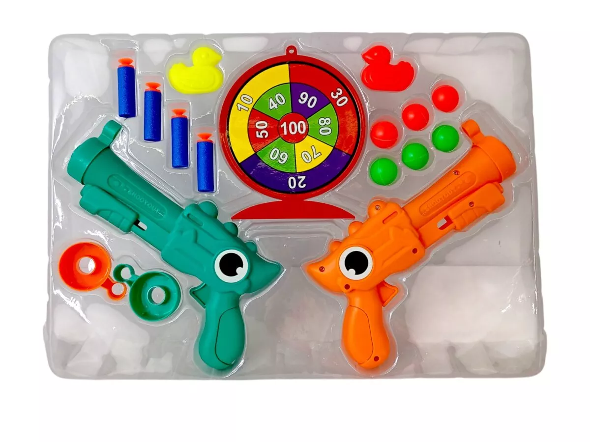 2 in 1 Dinosaur Shaped Soft Shot Double Gun Set | Soft Foam Bullets and Small Balls Set For Kids | 3+ Years.