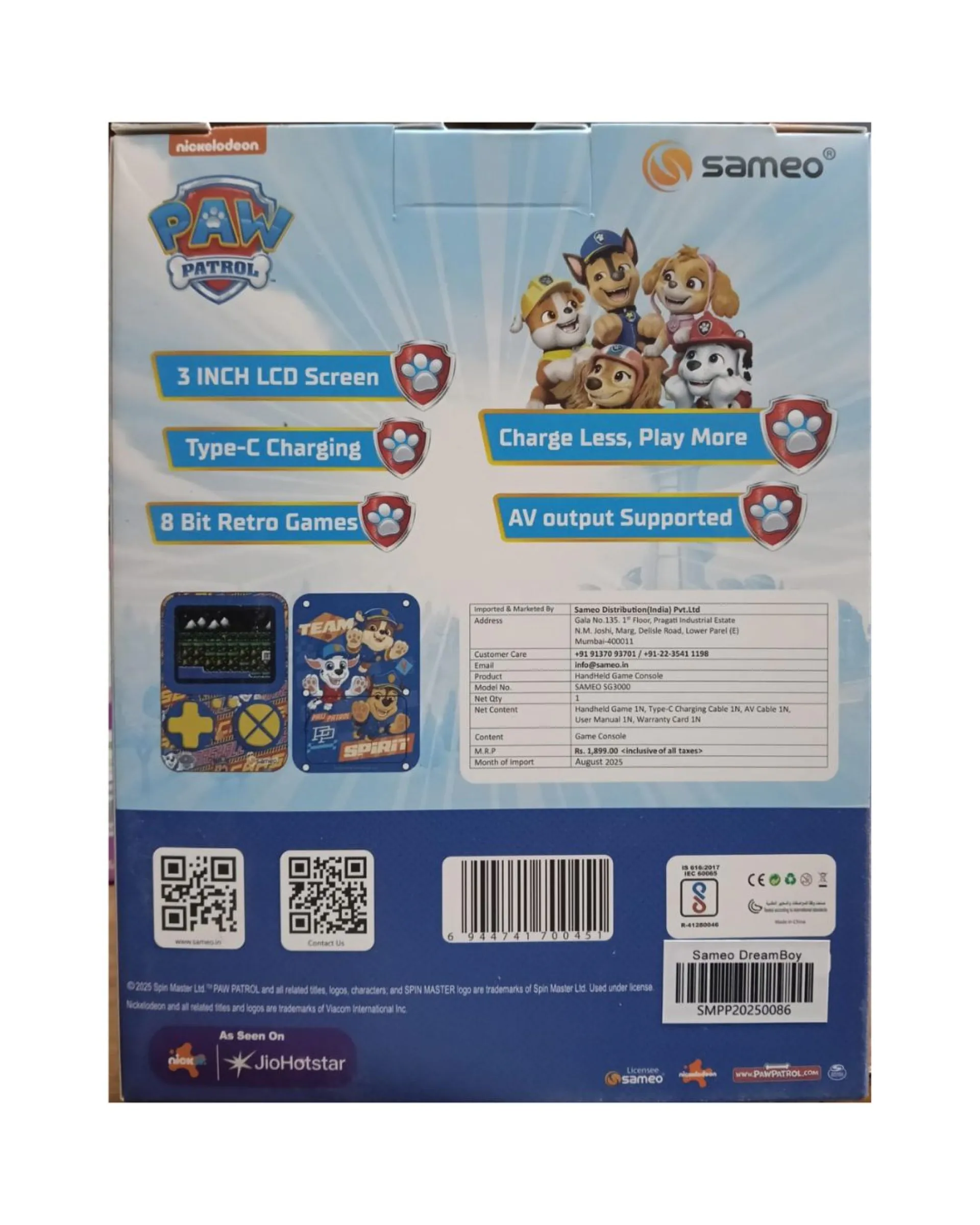 Sameo Paw Petrol SG-3000 Hand-held Game | Fun 500 Classic Games, 3-Inch LCD, Type-C Charging, 6-Month Warranty 3+ YearsSameo Paw Petrol SG-3000 Hand-held Game | Fun 500 Classic Games, 3-Inch LCD, Type-C Charging, 6-Month Warranty 3+ Years