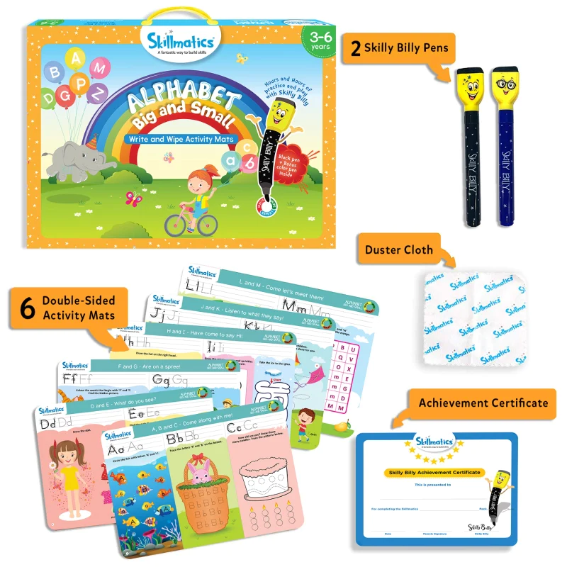 Skillmatics Alphabet Big and Small Write and Wipe Activity Mats | Educational Learning Toy for Kids | 3+ YearsAvailability: In stock
