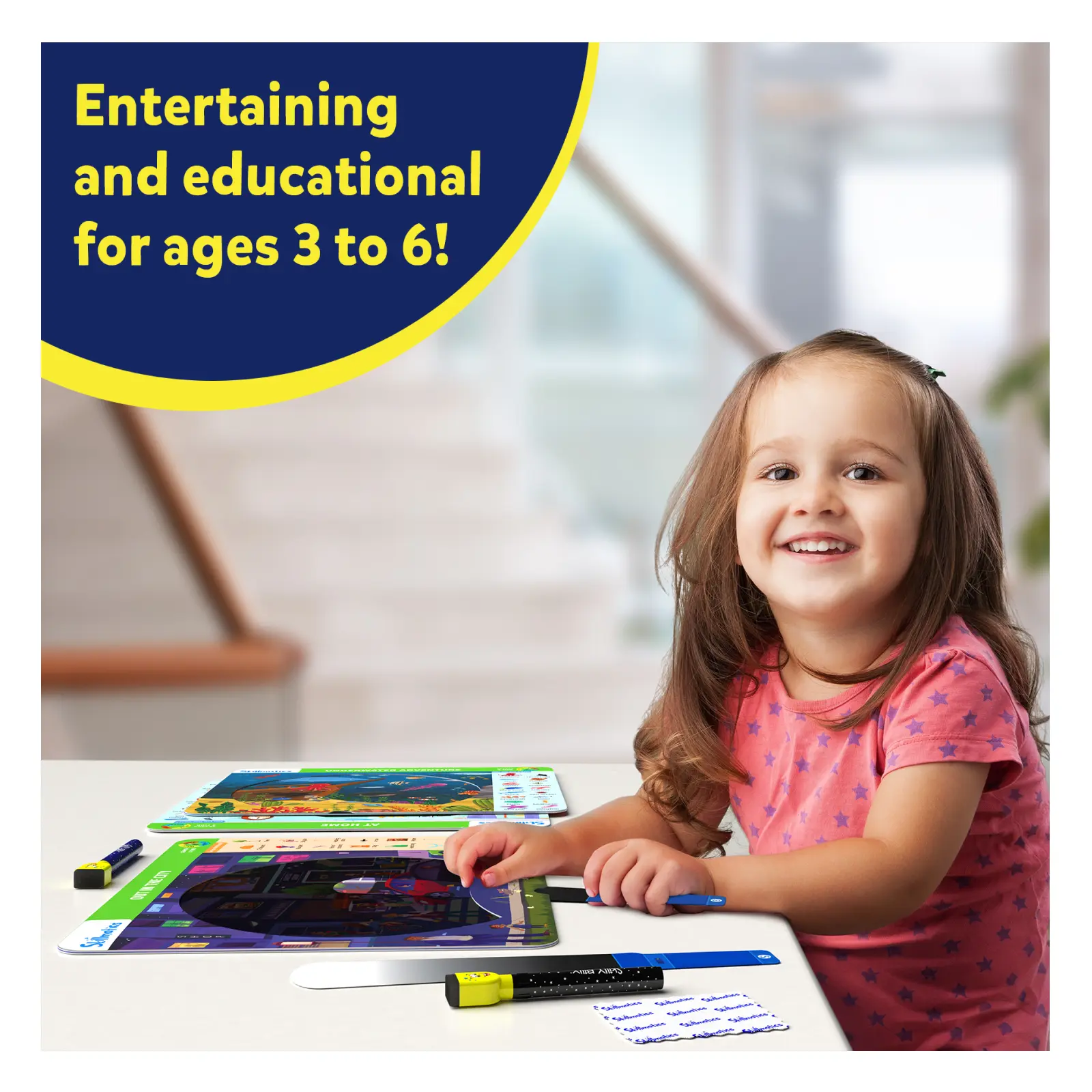 Contents: 6 Double-sided Activity Mats 12 Repeatable Activities 2 Paper flashlights 2 Dry-erase markers 1 Duster Cloth 1 Achievement Certificate 1 Welcome Letter